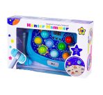 اسباب بازی چکش شکارچی، یک بازی فوق العاده جذاب و سرگرم کننده است که باعث افزایش مهارت فرزندتان در تمرکز و هماهنگی بین دستان و چشم خود می شود. کودک باید با چکش روی سر موجودات فضایی بزند که سرشان را از سوراخ ها خارج می کنند و در صورت برخورد صحیح با ایان موجودات فضایی صدا می دهند. این مدل دارای صفحه سایز بزرگ و یک چکش میباشد که این امکان را به شما میدهد تا این بازی بامزه و هیجانی را به صورت رقابتی نیز بازی کرده و با کودکانتان در ضربه زدن به سر موجودات فضایی شرکت داشته باشید!